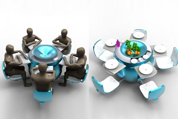 之前多新奇也曾经介绍过模块化相关的东西组合的厨房模块系统,下面介绍的这个模块化餐桌乍一看还觉得挺像一个蓝色的苹果,但事实上这是一个模块组合的餐桌,适合在小面积的餐厅之中使用。它的独特之处在于桌上圆形的输送带,无论在哪个位置上菜,只需旋转一下最上面那部分就可以把你的食物转到需要的位置上,这样就很方便夹菜了。上面那部分中间凹下去的地方是可以放一些水果或甜点。它有很多颜色可选择,它造型能给人一种新奇与现代的感觉。