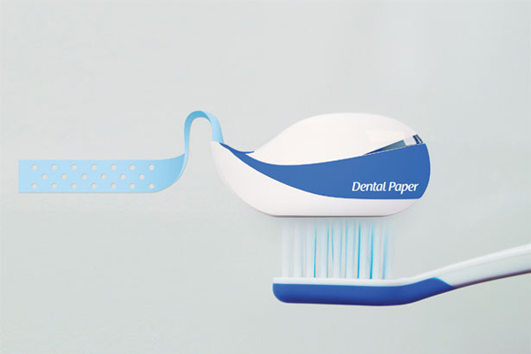其实说它是一个纸牙膏,实际上只是这种牙膏更加便携一些,因为它的占地面积非常的小,牙膏通过脱水并将其压扁之后就非常适合外出和旅行的时候携带,这个像纸带一样的牙膏上面有许多小孔,目的是为了让它可以更好的吸附在牙刷上面,它的外面是透明的,可以很直观的看出来包装里面还剩下多少牙膏。它的名字叫 Dental Paper,我们的生活中正是缺少这样让生活可以更加便利的小创意设计。