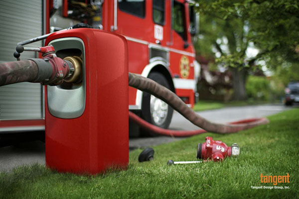 这是一个 Fire Hydrant 概念消防栓,它具有个性、前卫的外形,功能结合形态,具有现代感,并且很容易辨认。由铸铁制造的外壳坚固,不容易被破坏,整个消防栓涂有防护涂层,想打开阀门并不容易,这避免了由于被破坏、被打开阀门来偷水等各种原因而导致的水的流失,各种型号的接管都适合它的连接口。