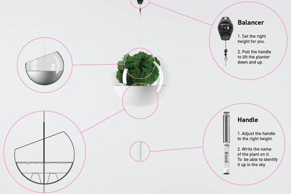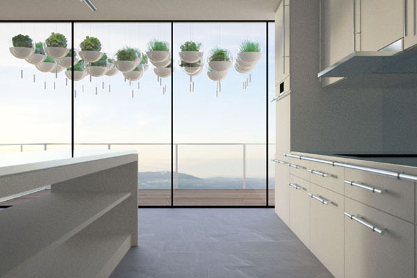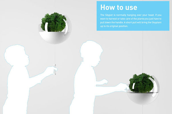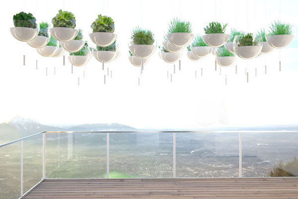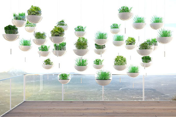 也许是因为我们现在生活的这个世界的环境越来越差的原因,设计师才会有这样的一个想法,这种阳台上悬浮绿植的概念设计有一个 Skyfarm 的名字。这些看起来的漂浮的盆栽是用绳子绑起来的,通过自己调节合适的高度悬浮在阳台上面,这些植物种植在模制丙烯酸球体的里边,可以感少水污染和大气的污染,里边种植的有机食物可以人更加健康。