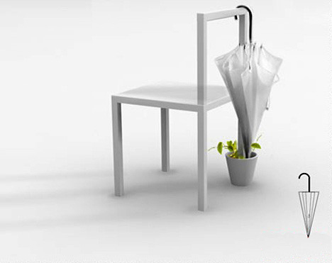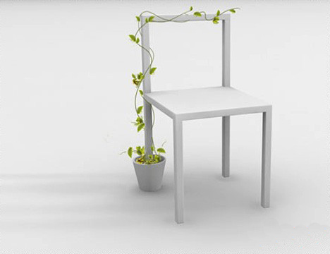 这是一个在花盆上的椅子,椅子看起来很简单,不过你会发现这把椅子是植根于一个花盆中。很巧妙的设计,让人不知道该把其当做是一件装饰品还是一件家居用品,或者它是一个简单的绿色家居。其实该创意有一个更深层的意义,将无生命力的椅子和有生命的植物结合在一起,表现出一种活力和生命力的延续。椅子可以用来挂刚刚使用过的雨伞,很让人意想不到。