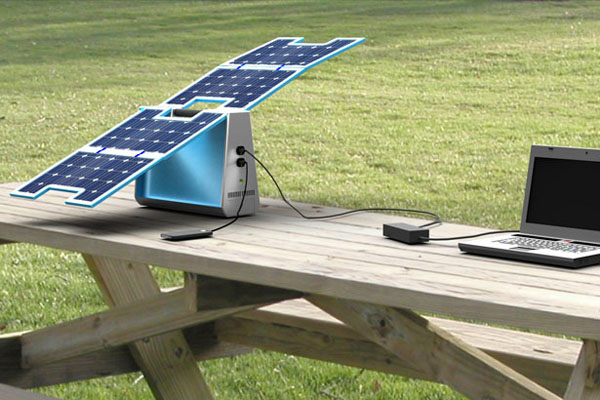比起其他的便携式太阳能充电器,这款Volta Solar Charger或许显得很大,并且不便携。所以设计者设计了个把手,方便使用者携带。但是它的优点在于并不像其他太阳能充电器一样易碎易坏,它用坚固耐用的材料制成,如果你希望即使在户外也自如地使用手提电脑等电子设备,那么它可能是你的最佳伴侣了。无论是手提电脑、手机、相机等其他各类数码电子设备,只要有足够的阳光与时间,你就不用担心没电的问题了。它带有两个标准AC/DC插口和一个迷你USB接口。