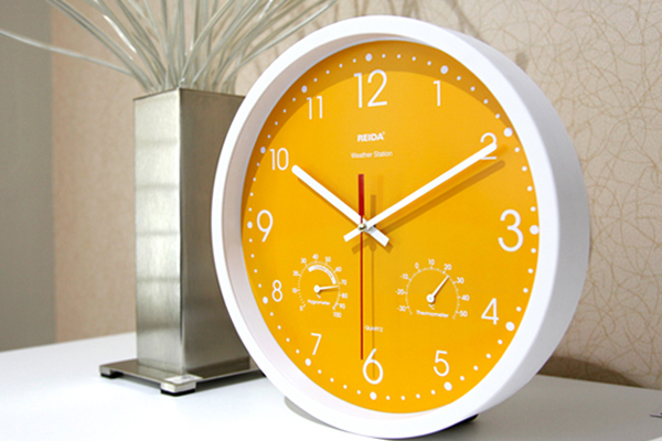 简约时尚风格的静音时钟,如果非要说一个它新奇与众不的就是这个时钟除了有时间的刻度之外还有两个显示湿度和温度的表盘,温湿度的显示体现着无言的体贴,每走一步,一份烦恼被悄悄洗去,第一走圈,一份有求必应被静静带走。有意思的是,这款时钟还有6种颜色可以选择,分别为:水晶湖、太阳雨、蜜光影、漾日晴、夏凉风以及轻卷去。天猫购买