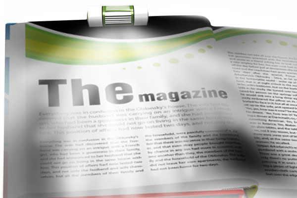 这款创意设计的小电筒是为了帮助你在路上,如晚上坐车的时候,来看书的。用它来照明不会影响身边的人,它用两节锂电池供电。你可以把它夹在书页之间,轻按一下设备的两端就可以将它夹上去。灯的亮度可通过扭转旁边白色的圆柱进行调节。