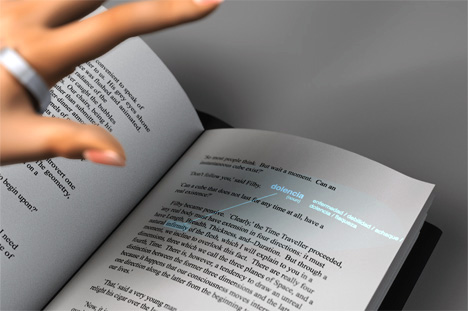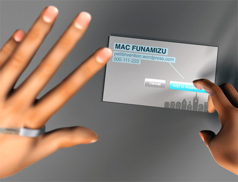 这是一个概念的便携式投影仪设备,把它带在你的手上就像一个手链,配备摄像头,投影机和WiFi ,多种高科技功能一应俱全。你看到的手链实际上是一个触摸屏,显示基本的时间,日期等功能。你可以在屏幕上控制投影轻按可以扫描图片或者实现其他功能。