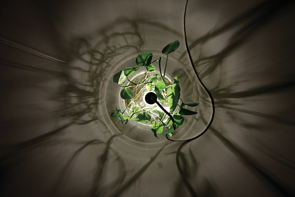环保,现在全球都在倡导。所以,设计师的设计理念如果投向这一方向,准没错。现在介绍的这款新奇的花瓶植物灯就是一个环保的典范,它将花瓶,植物和灯三个物品有机的结合到了一起。这盏灯带给人们的不仅仅上光合作用上面的好处,而且,当玻璃里面的植物透过灯照出来的光线,你会看到非常美丽的图案,那是属于植物的美!