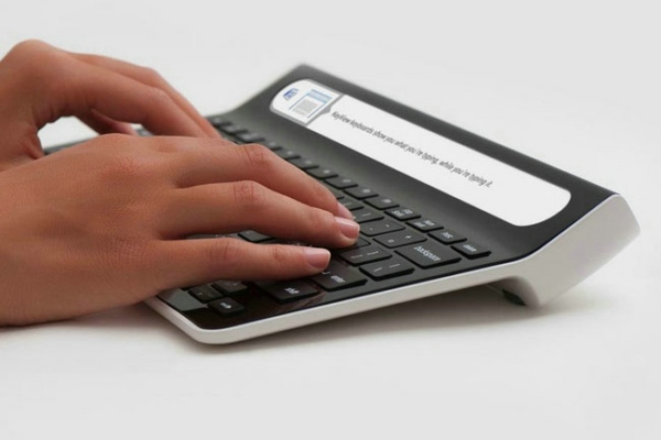 以色列电子设备厂商 KeyView 推出了一款名为 Smartype 的带显示屏键盘,与普通外接键盘最大的区别在于它拥有一个小小的显示屏,这个小屏幕会显示正在输入的内容,不必时不时地抬头看显示器。此外小屏幕还可以用来浏览各类应用的信息,如天气和邮件等。要知道要想使用这个键盘控制电脑你还是需要一台显示器的哦,这个新鲜玩意已经开始量产。