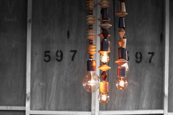 一个美丽的东西能够给人以愉悦感,现在介绍的这款新奇的创意照明灯,就不得不说它在各个方面的美丽,首先它非常的具有装饰意味,另外,它用非常简单的木料车削工艺对木材进行最基本的加工使之呈现出不同的轮廓和装饰造型,然后像串手链一样将这些不同大小、形状、颜色的小木块串在一起十分漂亮而且效果非凡。相信这样的美丽灯饰,你一定Hold不住了?